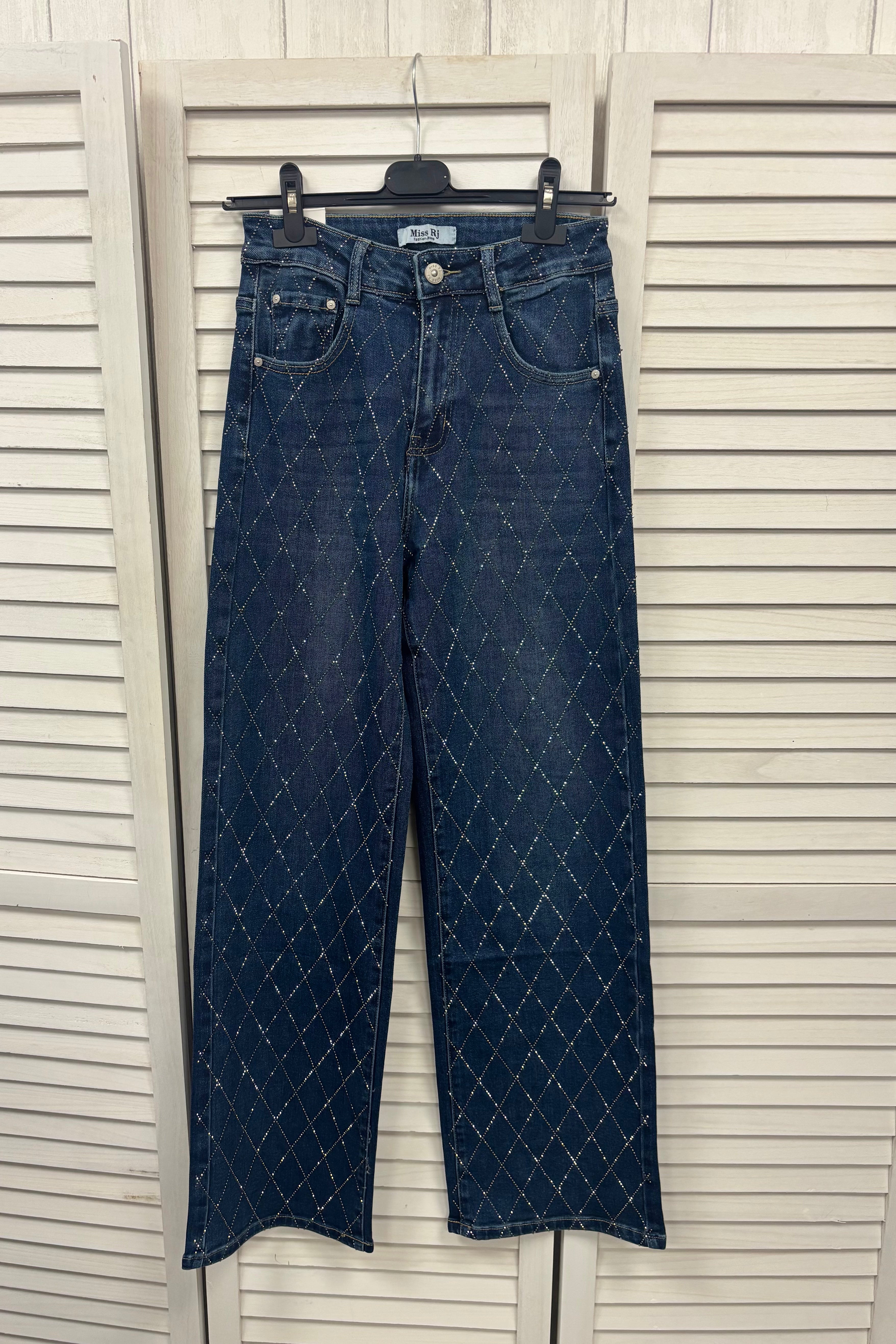 Laura Embellished Diamond Wide Leg Jeans
