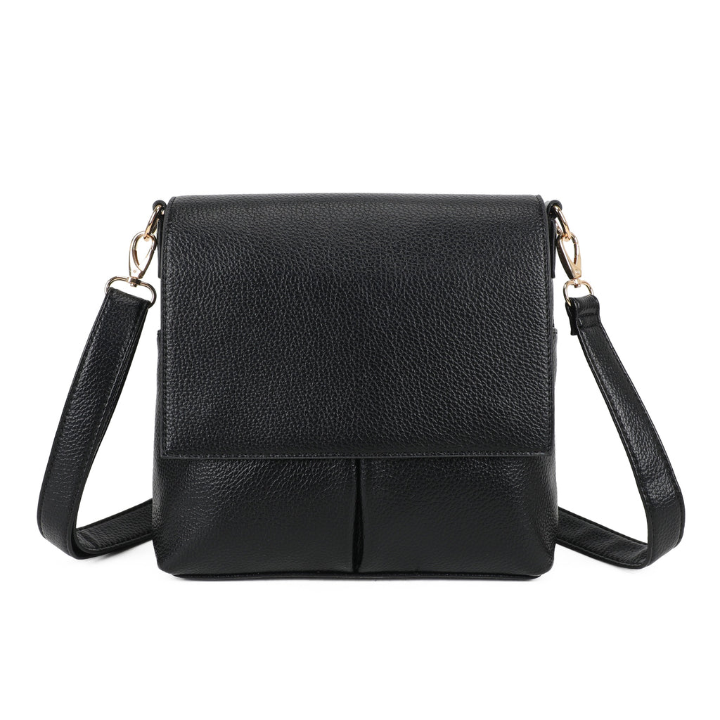 Stylish and practical, this compact crossbody features a secure top zip with flap and popper fastening, double front pockets, and a zipped pocket to the back for easy access. Inside you will find a zipped pocket and slip compartments to keep essentials organised. Finished with elegant gold tone hardware and an adjustable strap for comfortable, hands free wear.