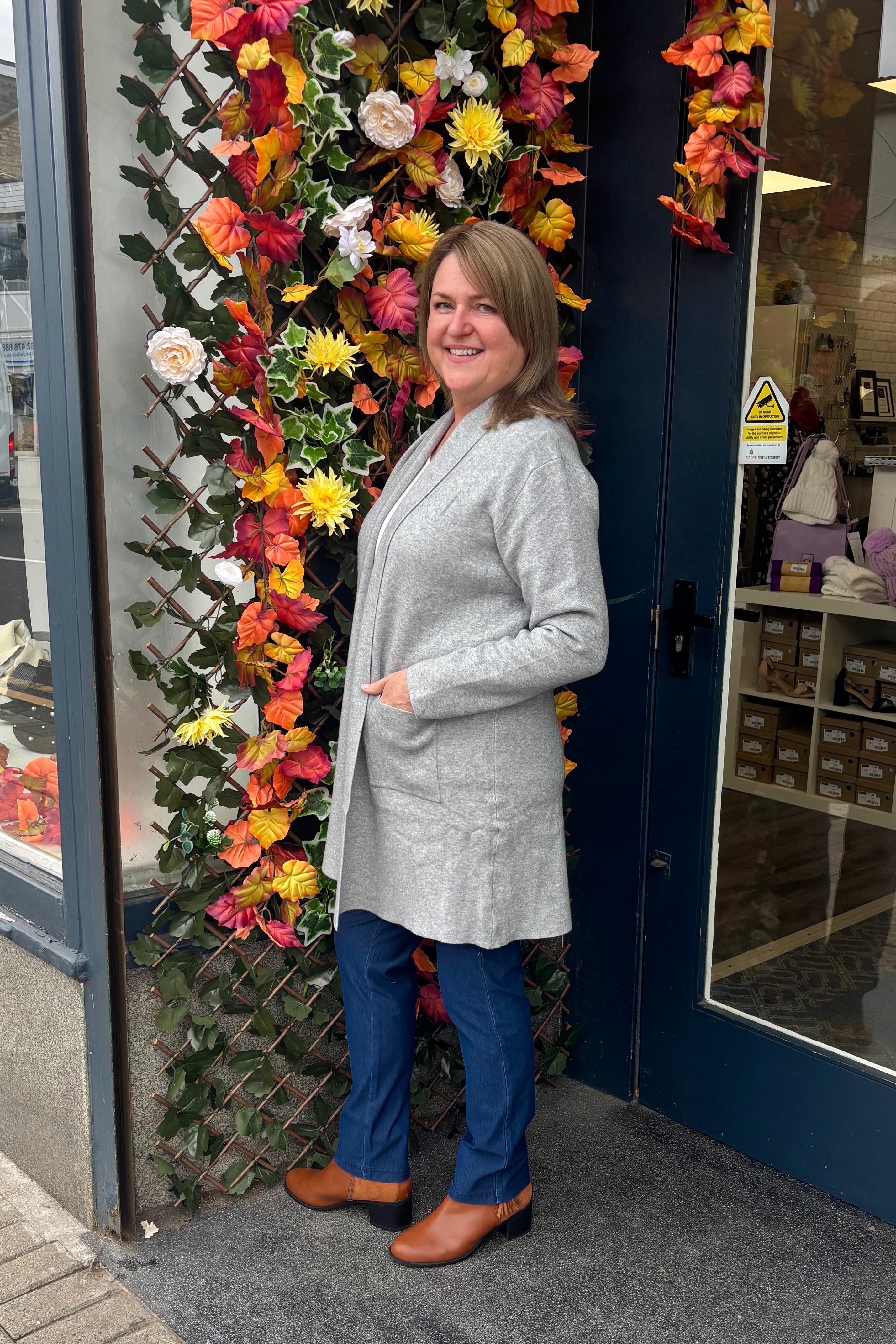 Elevated layering starts here! Spun from a wool blend with a touch of cashmere, this longline cardigan drapes beautifully for an effortlessly refined look. The open front silhouette and relaxed, boyfriend inspired fit make it the perfect piece for throwing over everything from tailored trousers to off-duty denim. Finished with a turn back collar, full length sleeves, and handy patch pockets, it’s a versatile piece you’ll reach for all season.