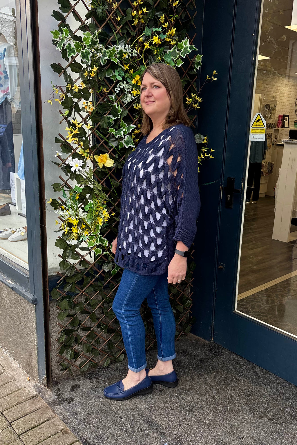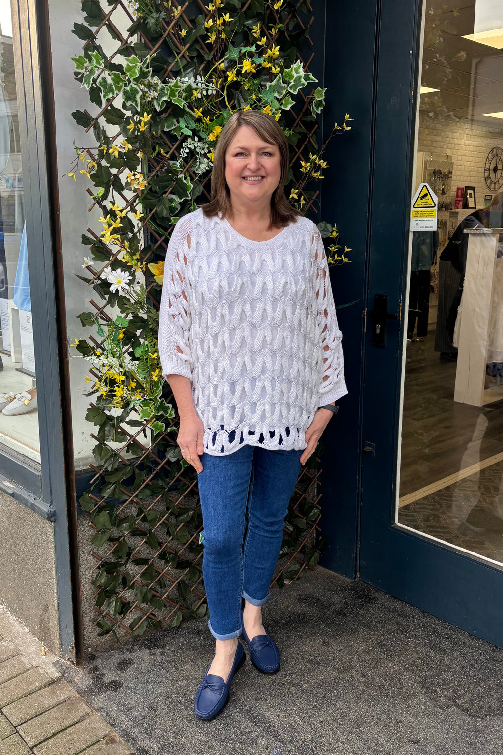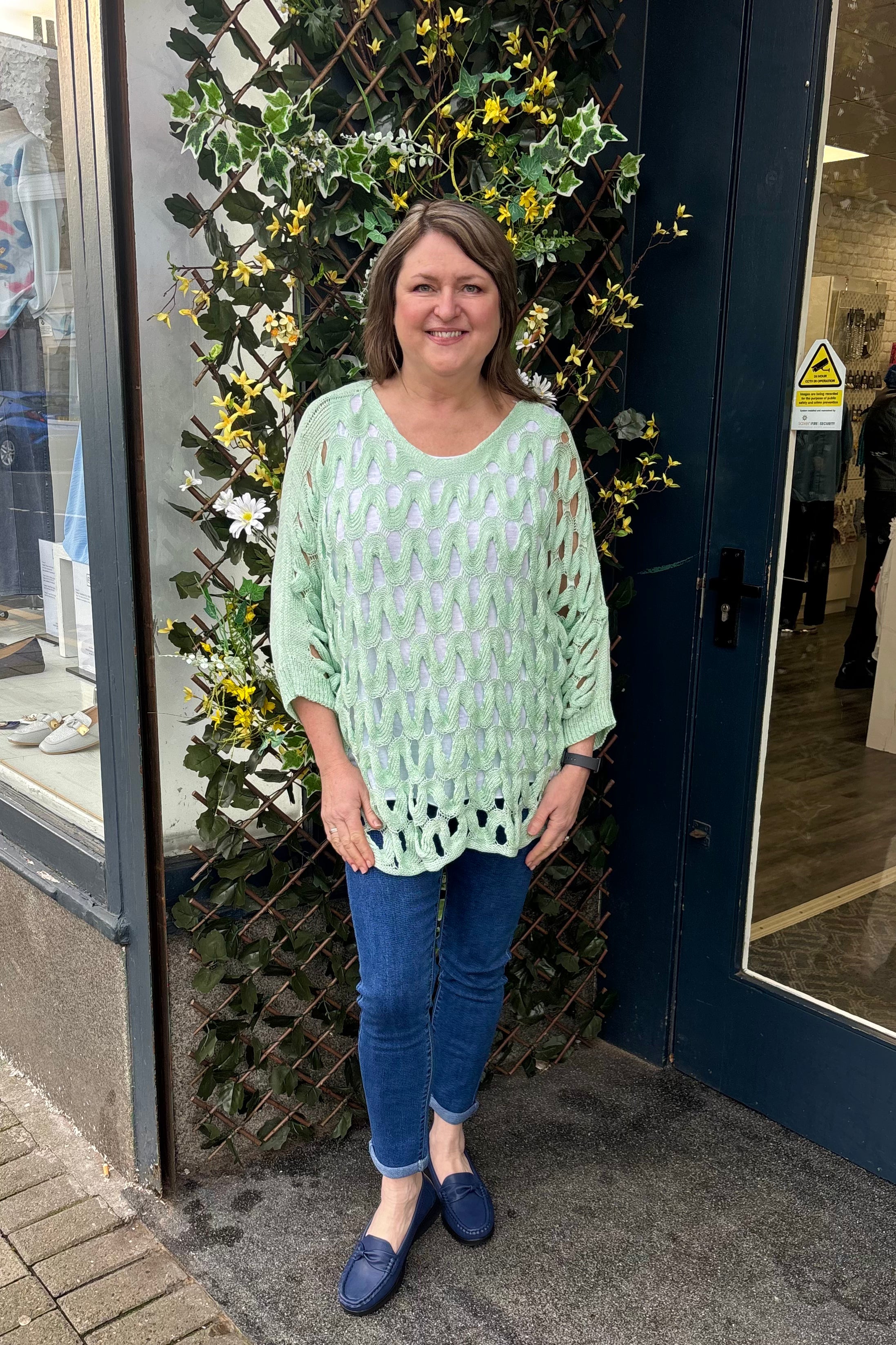 Create a beautiful look with this openwork top in a soft sheen mercerised yarn. It features a wide round neck, bracelet length sleeves, and a straight hemline. This is a versatile layering piece that can be worn over a simple camisole, shirt or sleeveless dress for extra coverage. Stylish and easy to wear, team Deena with jeans and loafers for a casual look, or dress her up with smart trousers, and a pair of heels.