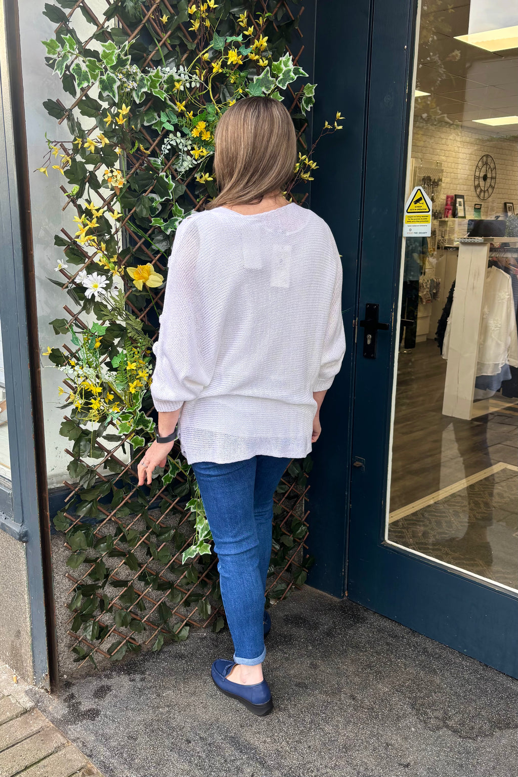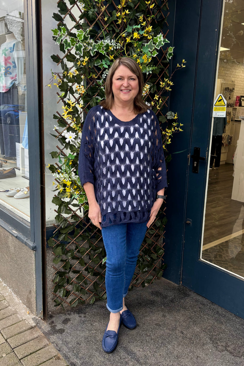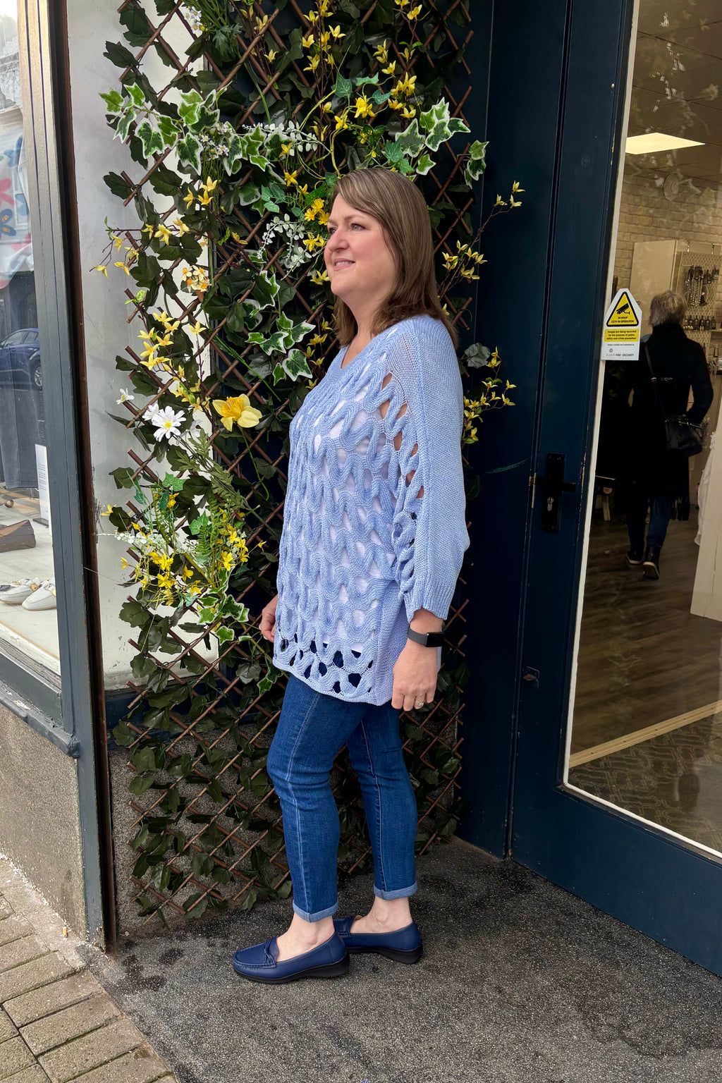 Create a beautiful look with this openwork top in a soft sheen mercerised yarn. It features a wide round neck, bracelet length sleeves, and a straight hemline. This is a versatile layering piece that can be worn over a simple camisole, shirt or sleeveless dress for extra coverage. Stylish and easy to wear, team Deena with jeans and loafers for a casual look, or dress her up with smart trousers, and a pair of heels.