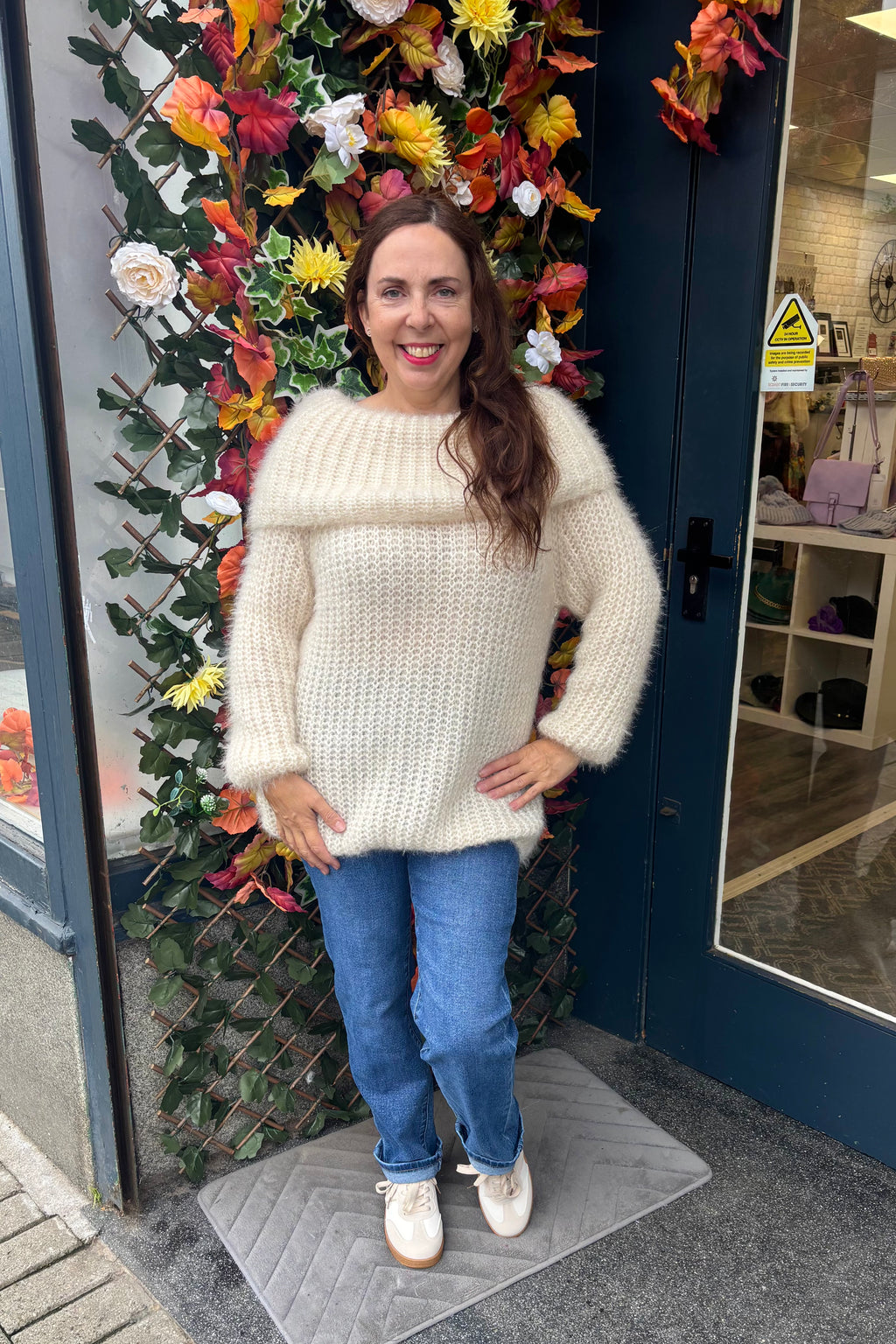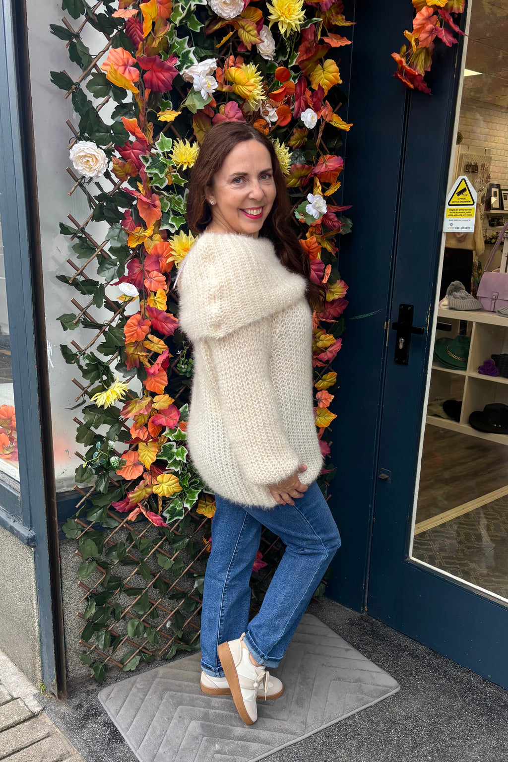 Wrap yourself in ultimate comfort with our super cosy Betsy Statement Collar Knit. Featuring a statement cowl neck collar with a fisherman's style rib on the neckline. The long sleeves and chunky ribbed texture add extra cosyness, making it perfect for layering on chilly days. Effortlessly chic and irresistibly soft, it’s a wardrobe essential you’ll reach for again and again.