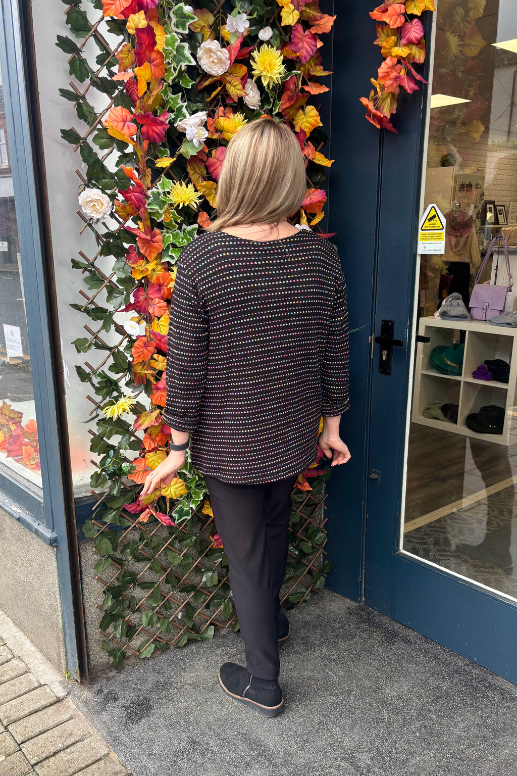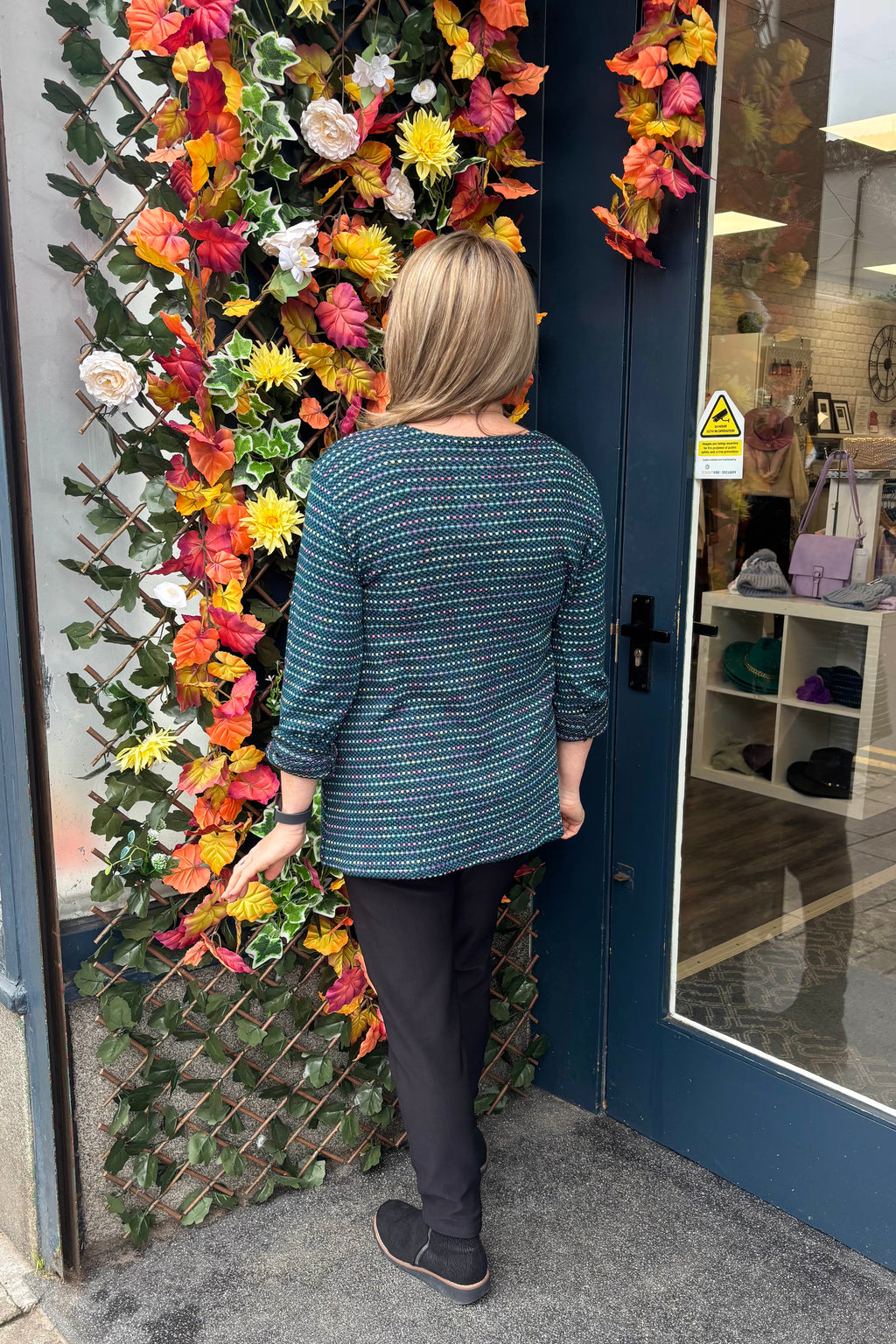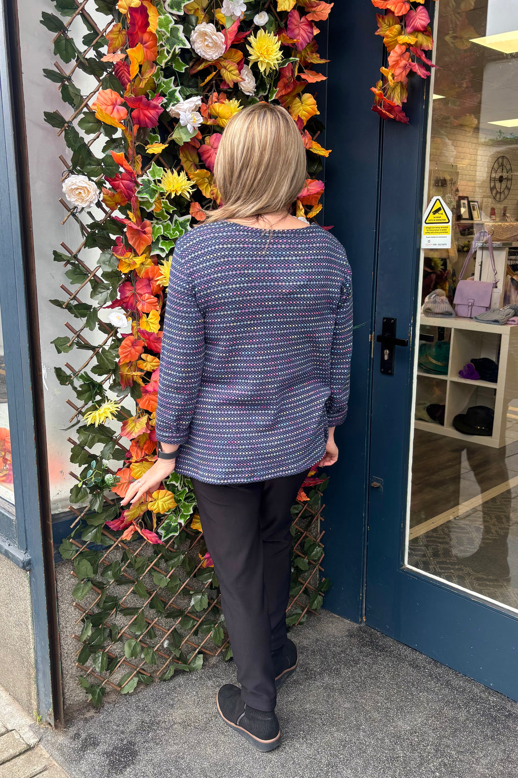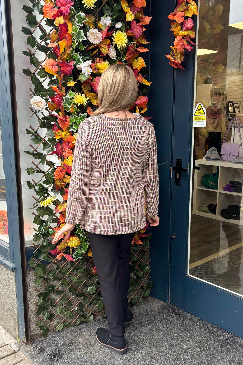 Bring a pop of colour to your look with our Louise necklace top. Designed with a flattering scoop neckline and long sleeves that can be rolled up for a laid-back look, this top is all about easy, everyday style. This knit top features a multicoloured stripe dash pattern and comes with a complementary necklace, the perfect finishing touch for an effortlessly put-together outfit.