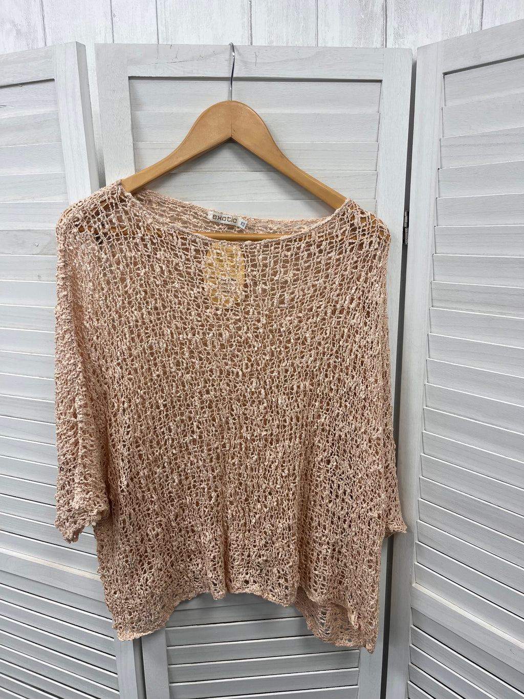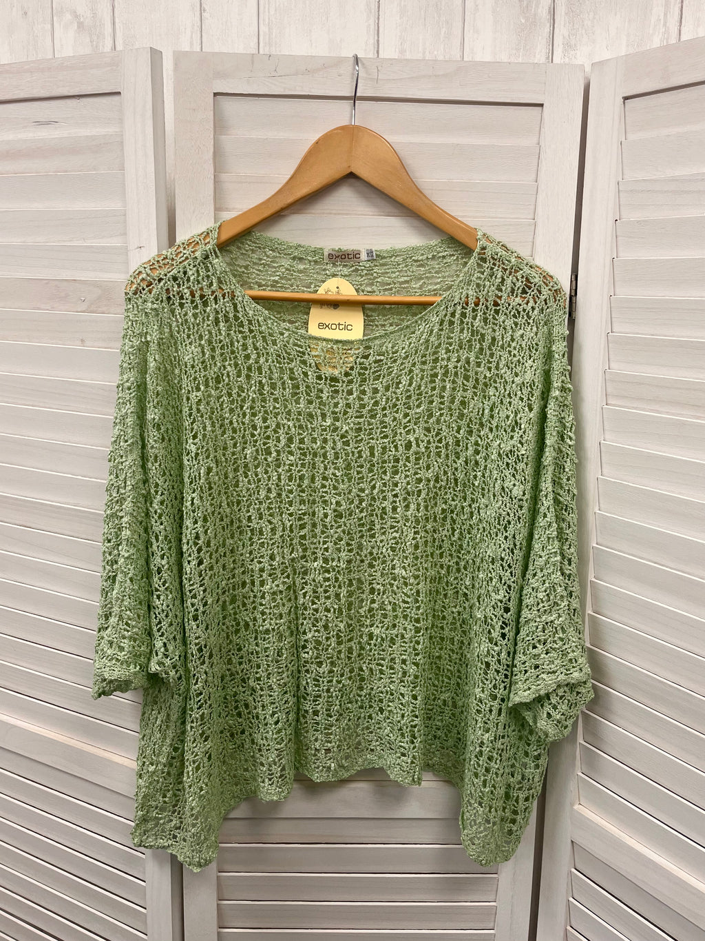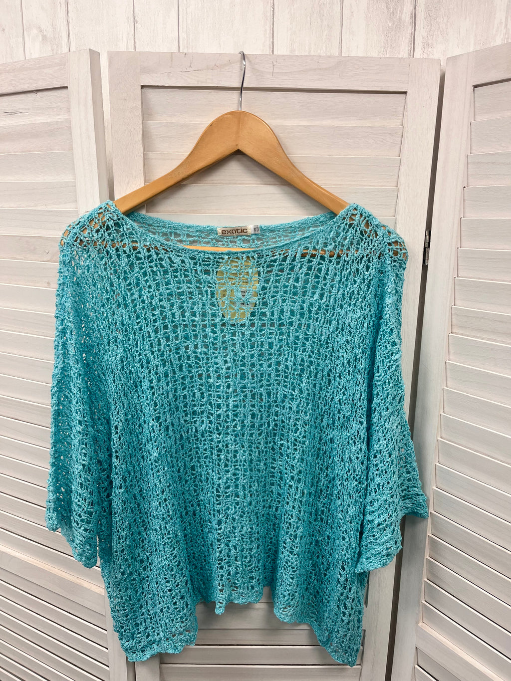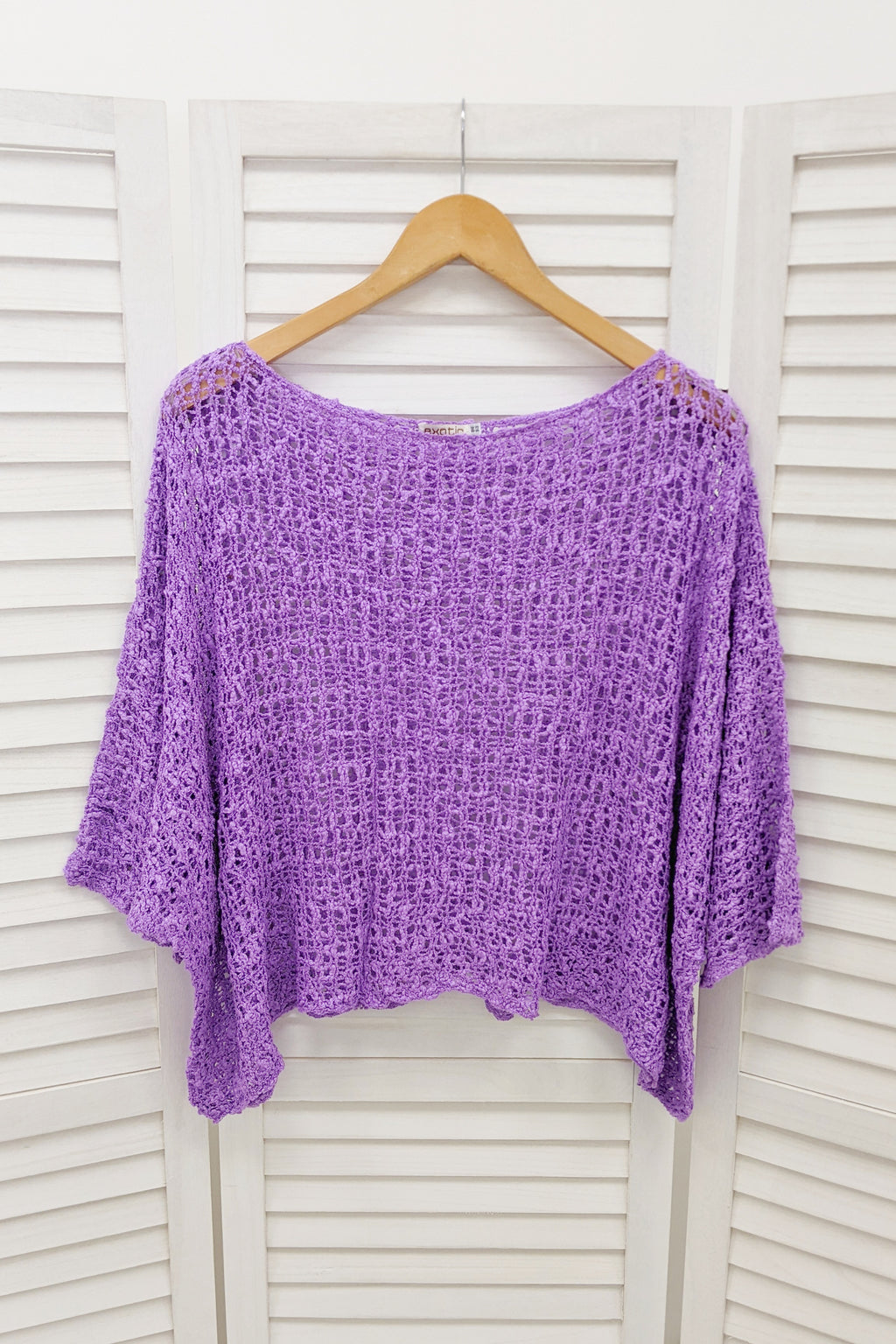 Popcorn knit boho style poncho top with 3/4 length batwing sleeves, a wide neckline and a curved hem. This fab poncho would look great over a vest or it can be dressed up over a jumpsuit or dress.