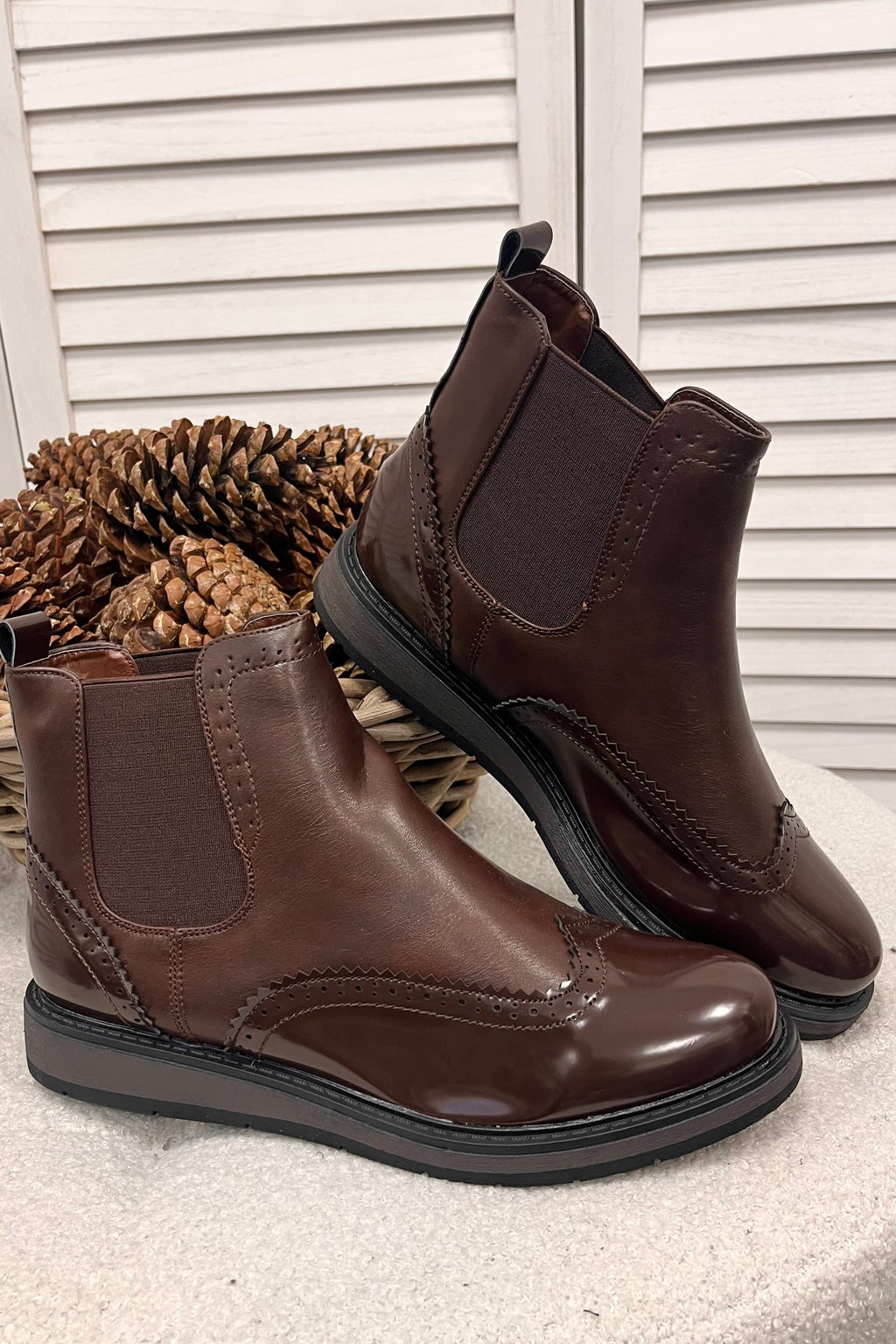 Step up your smart-casual style with these Chelsea Brogue detail ankle boots. With classic features, a rounded toe for timeless appeal, a wedge incline that adds subtle lift and comfort, and traditional elasticated side panels and a rear pull tab to ensure effortless comfort. Perfect for both everyday styling and polished weekend looks, these versatile boots pair beautifully with jeans, skirts, or trousers.